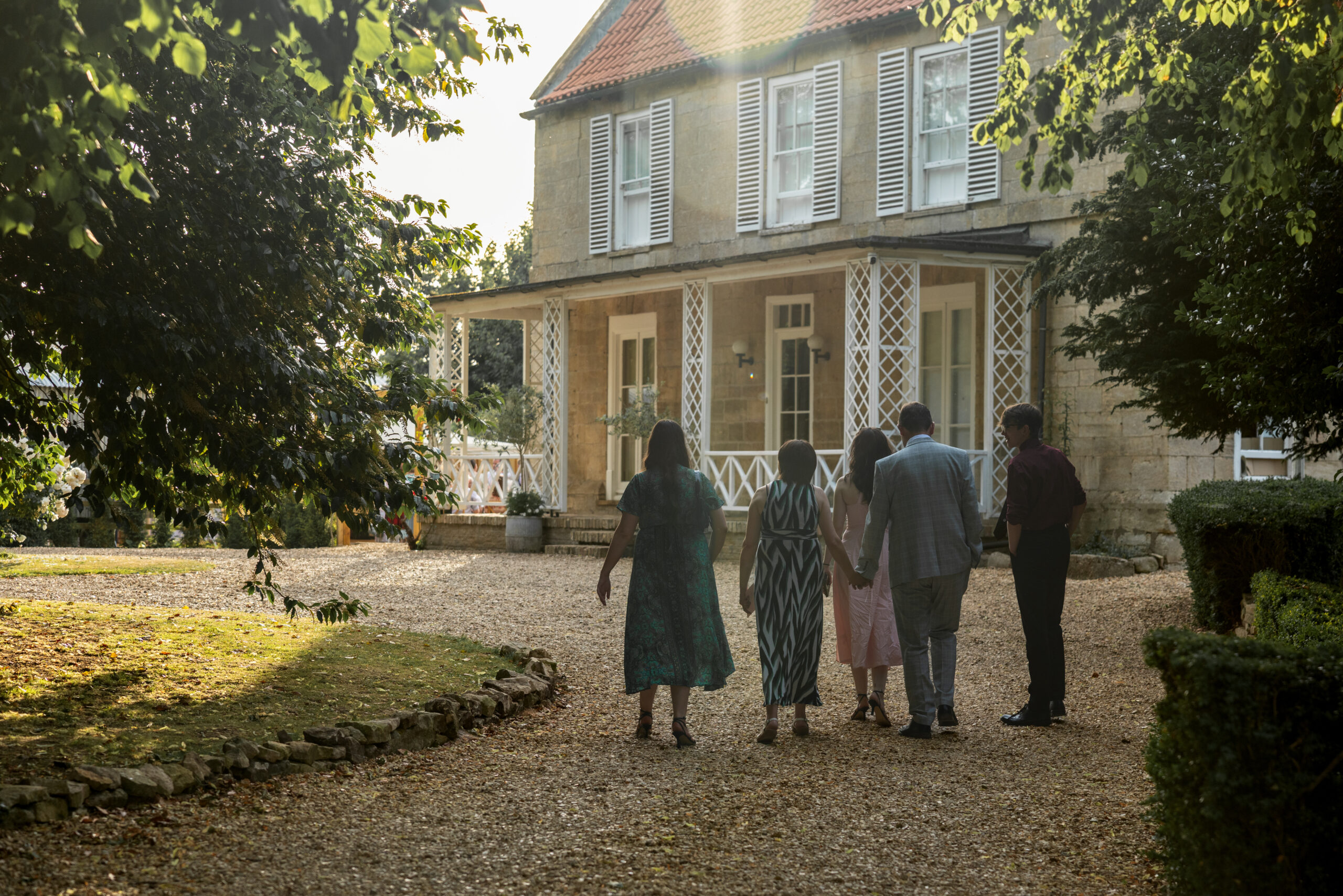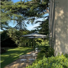 Picturesque gardens elegantly surround a magnificent Georgian house. This exquisite location features a licensed bar and offers luxurious accommodation, providing an ideal setting for relaxation and entertainment.
